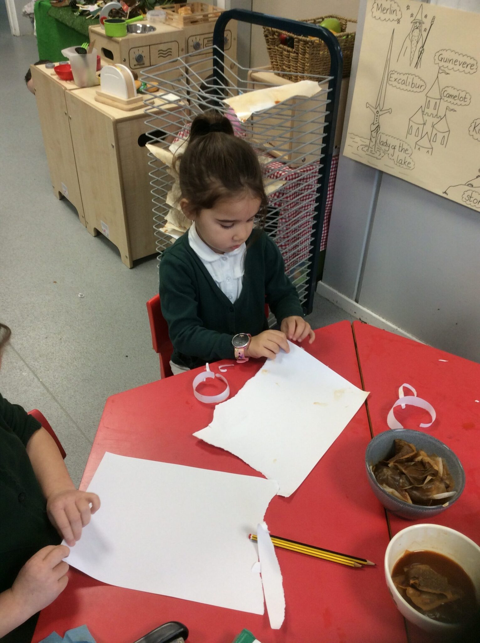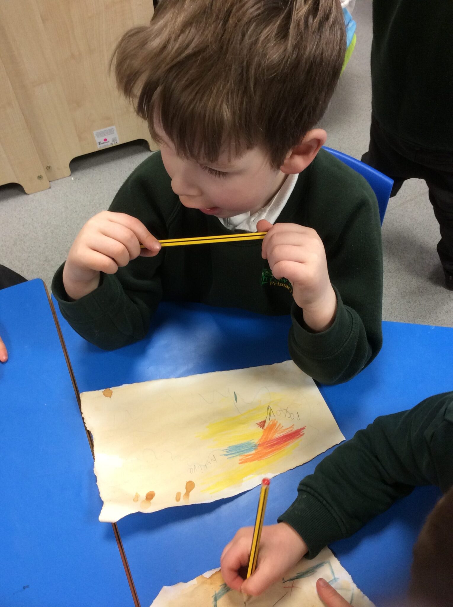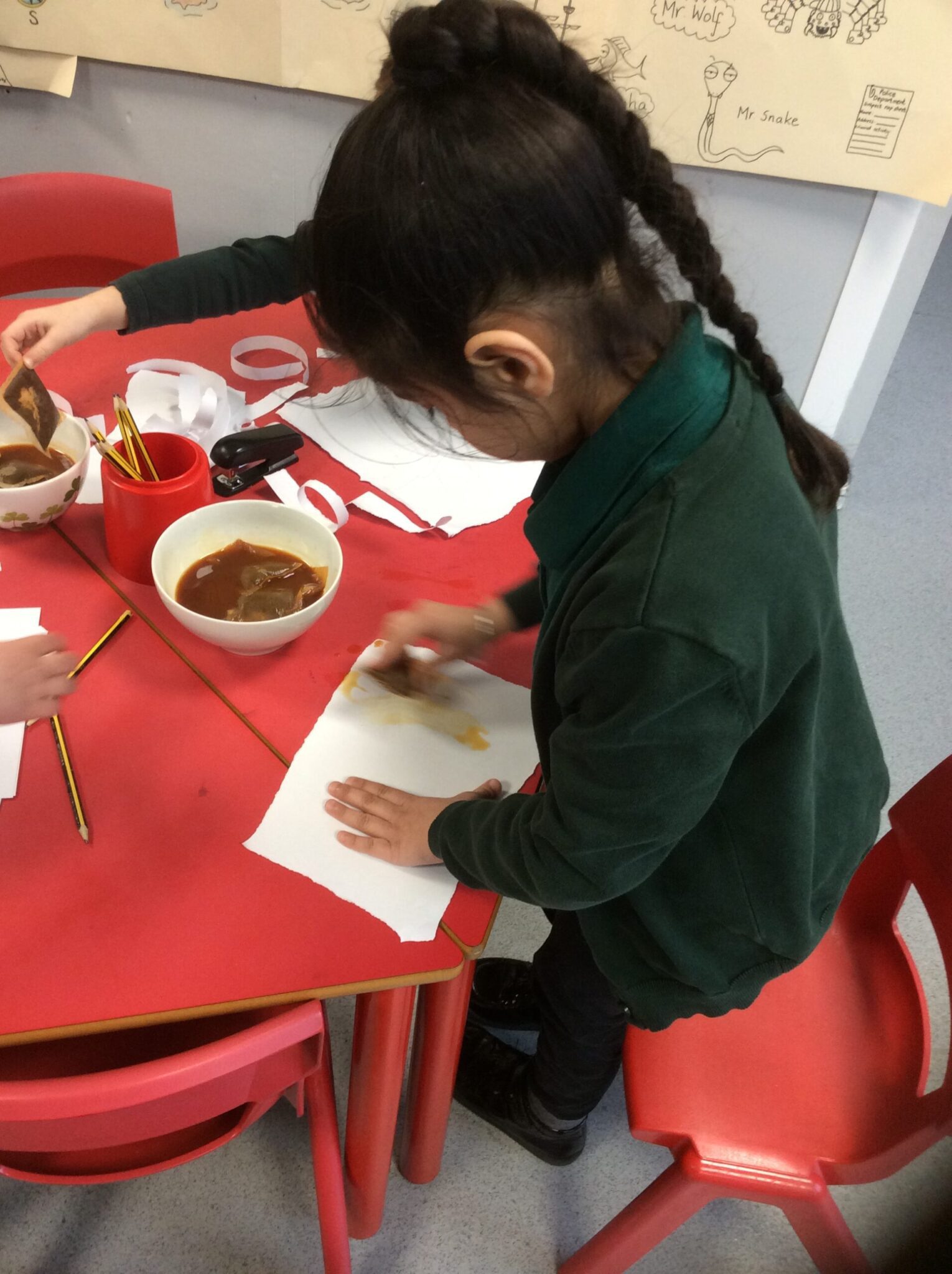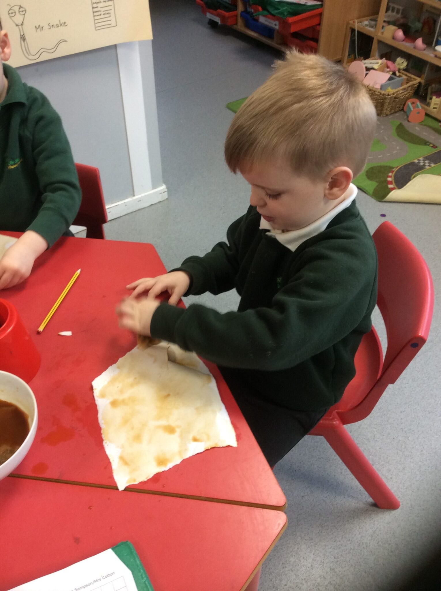 We’ve had a wonderful day inspired by the book The Pirates Next Door. We have made our own pirate hats, tea-stained treasure maps and brought our role play to life with costumes and a pirate shop. We got creative at the easel and painted our own routes around pirate island and put our phonics skills into practice when we wrote our labels for ships, hills, rivers and mountains.