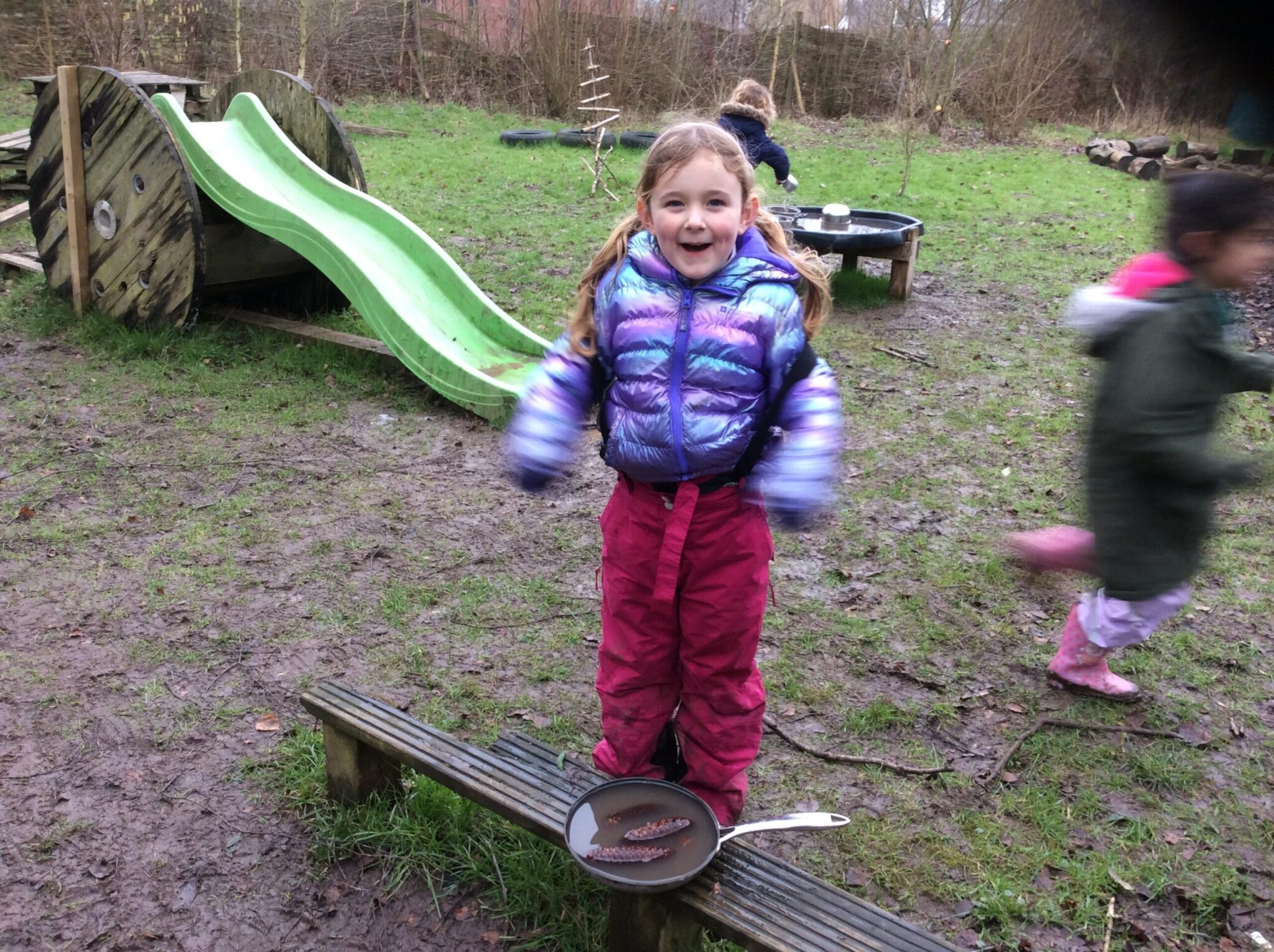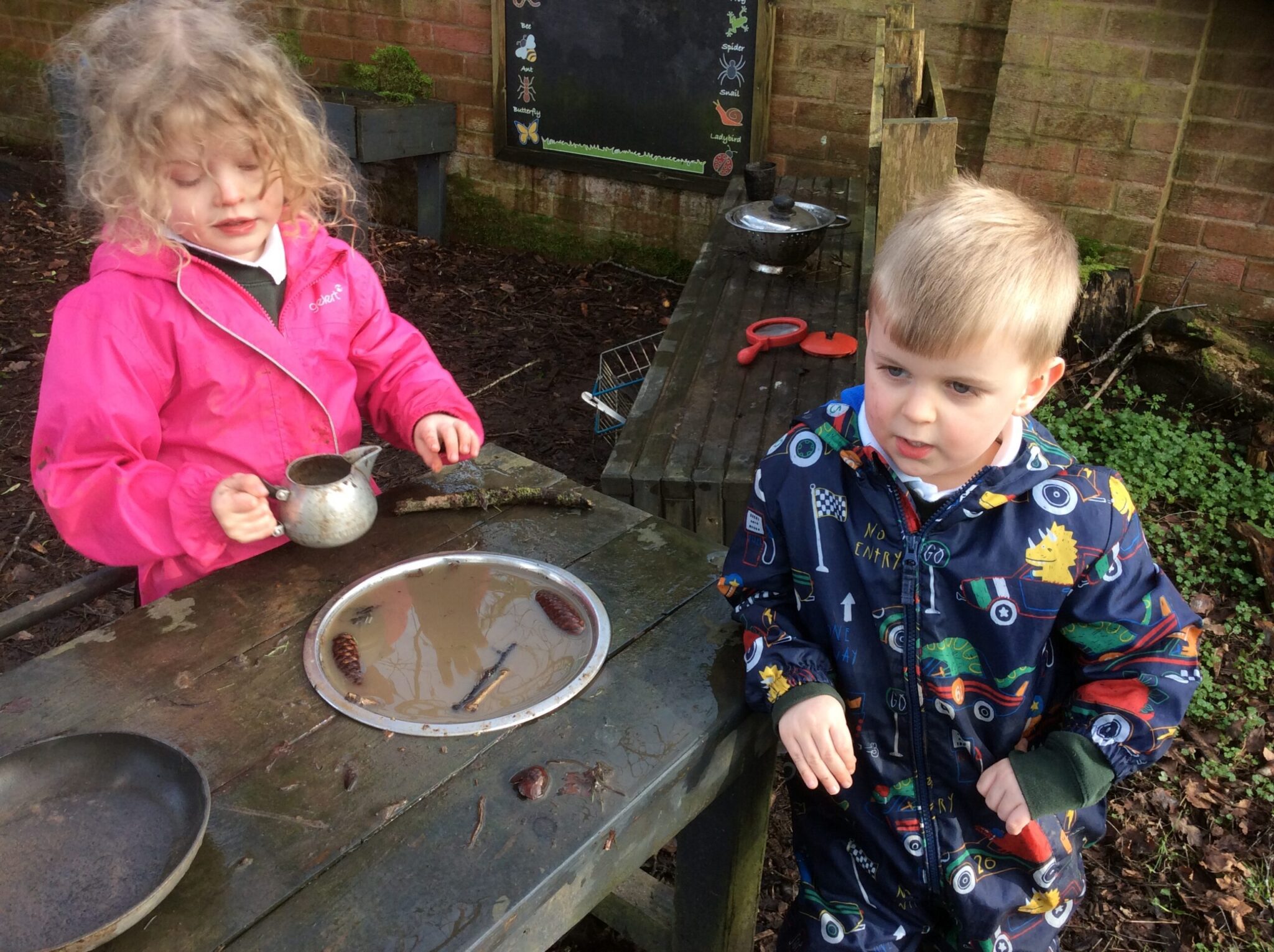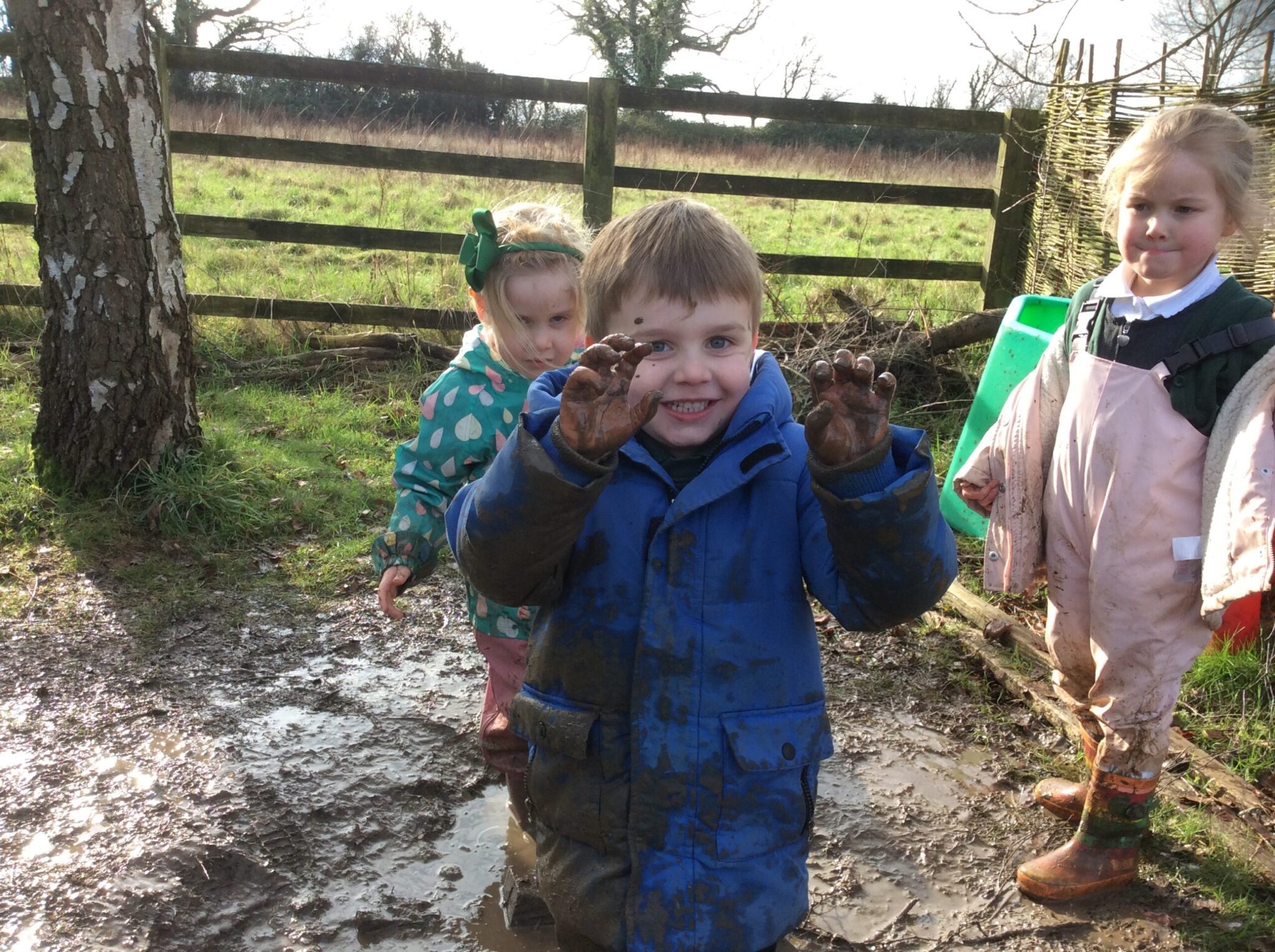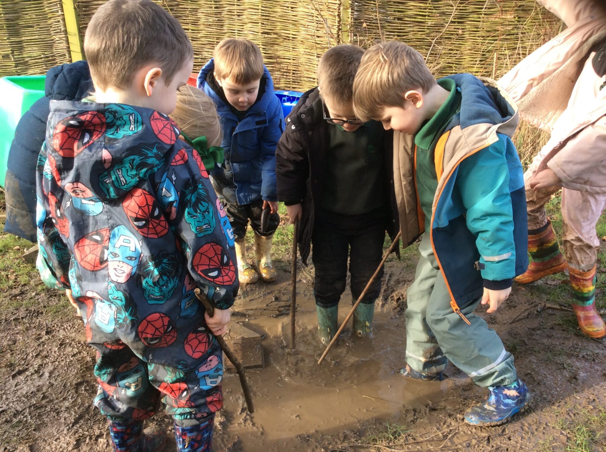 We had a lovely time during our outdoor learning session this week. Children were making chocolate soup, digging up mole hills as well as exploring the saturated digging area, which led on to a great game of mud monsters! It was great to see the children problem solving, negotiating and working well as part of a team to achieve their goals.